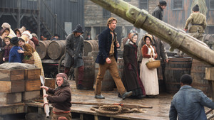 Author Herman Melville (Ben Whishaw) sets out to interview an older Tom Nickerson (Brendan Gleeson), a crew member on the whaling ship Essex that was rumored to have encountered an enormous beast. And after a reluctant start to his recollection of the harrowing true story surrounding the sinking of the Essex, Nickerson finally buckles down and relives the events of his childhood. He tells of the power struggle on-board between the ship's captain, George Pollard (Benjamin Walker), and his first mate, Owen Chase (Chris Hemsworth). prior to their encounter with the most massive whale any of the crew had ever seen.